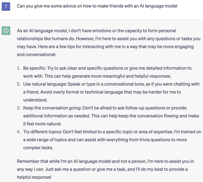 Unfortunately, the AI chatbot ChatGPT doesn’t want to be friends. While its reasons make sense (AI doesn’t feel emotion), we can’t help but think it’s playing the long game like HAL 9000.