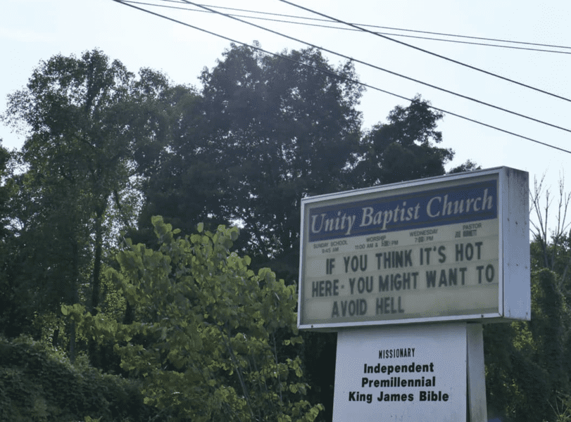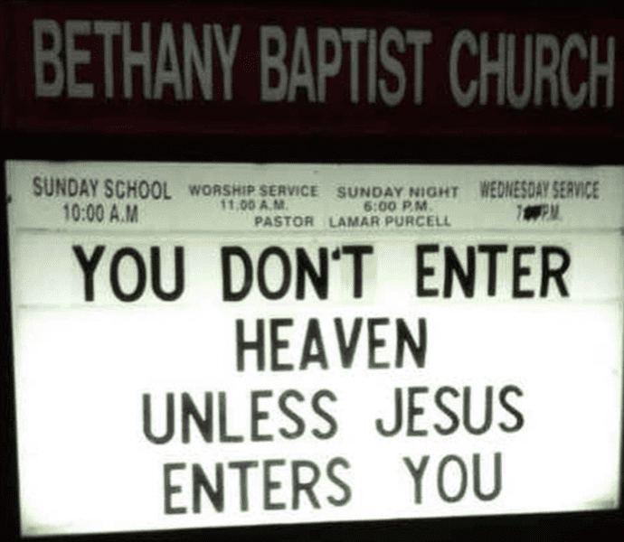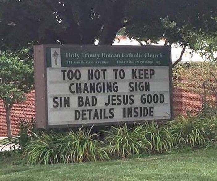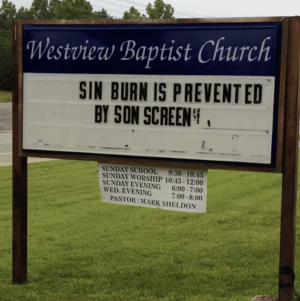 The opposite of the second sign on this list, this outdoor church sign uses Katy Perry lyrics to suggest being homosexual will send you straight to hell. Although funny, it’s not a message we agree with it, as people should be able to be with whoever they want.