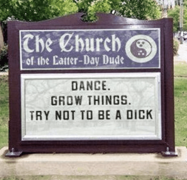 This church sign offers a few nuggets of advice, most notably, don’t be a dick. It’s not that hard (pun intended).