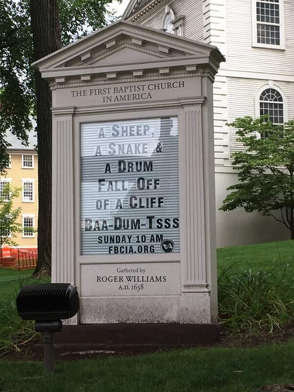 The First Baptist Church in America is all about the dad joke.