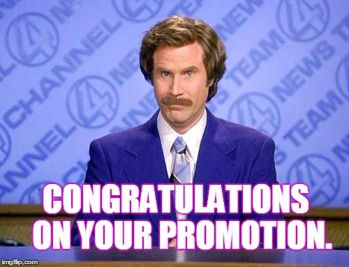 What says congratulations more than a meme of Ron Burgundy wishing someone all the best on their promotoin?