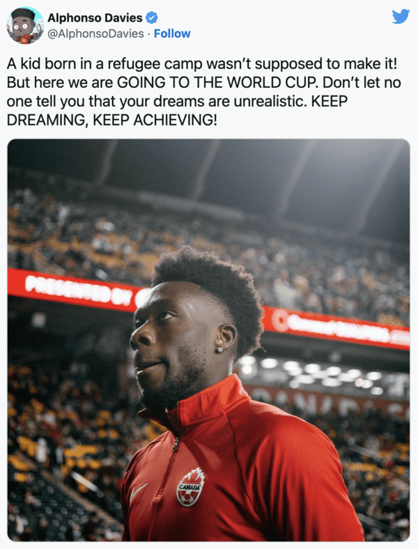 This one is more of a personal story about footballer Alphonso Davies making it to the 2022 FIFA World Cup with Canada, but it can be used as a good motivational meme that pays tribute to a person’s hard work and desire. Making World Cup history with his World Cup debut sure is impressive.