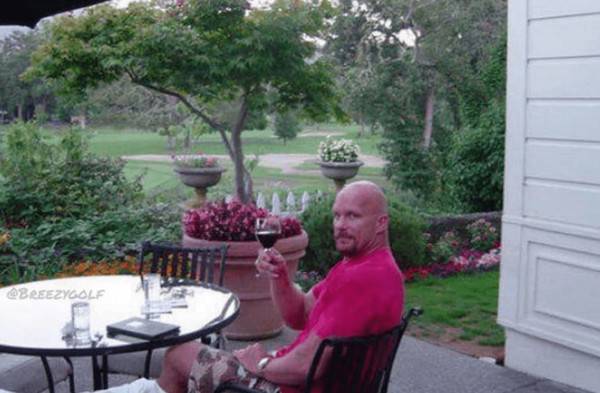 When you’ve been smashing the beers but need to act respectable. This is the perfect meme that sums up many dads after a day on the green. Beers on the course, wine off it. The use of Stone Cold Steve Austin, a known beer drinker, just caps things off.
