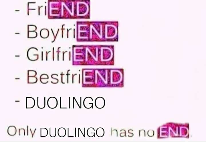 Anyone that has had a language lesson using Duolingo knows this meme to be true. There is no end game.