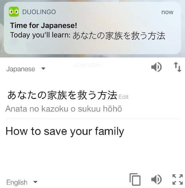 Another threatening message from the Duolingo owl.