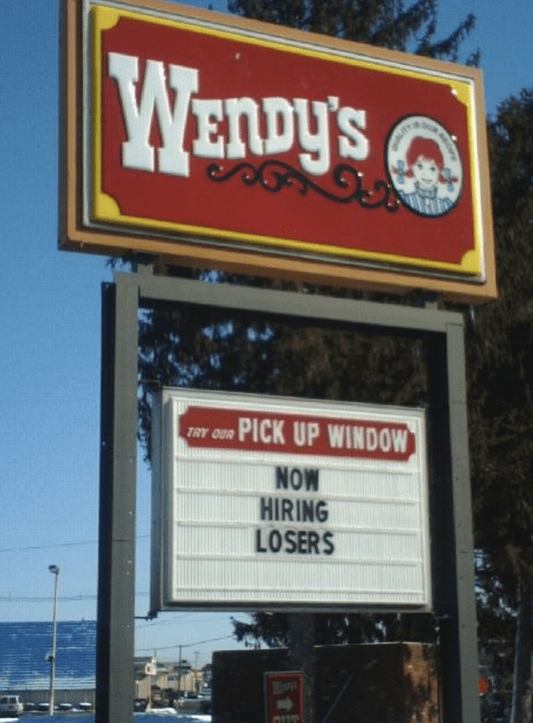 Fast food restaurants are known for hiring teenagers and giving people their first jobs. They often cast a wide net when hiring employees. Wendy’s hiring notice is funny, clever, and honest. It’s the place where losers work and winners dine.