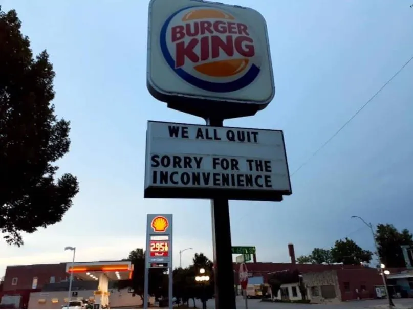 Burger King in Nebraska had everyone laughing with their “We All Quit. Sorry for the Inconvenience” sign. Well, they do say the funniest jokes have some truth to them.