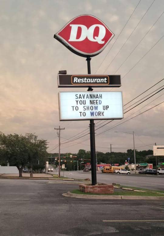 Instead, they used their giant billboard sign to shame Savannah for not showing up again. It’s safe to assume that Savannah will never miss another shift again.