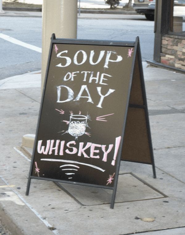 Sometimes, the beer’s even better than the food. Besides good food, bars and pubs often serve up the best beer and finest whiskey in town. Thus, the soup of the day is a nice glass of whiskey. The sandwich of the day is two tequila shots.