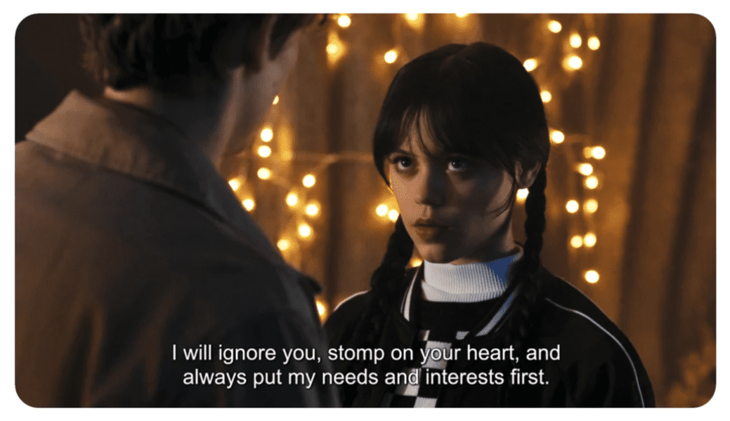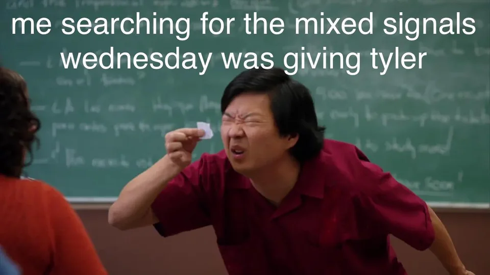 It’s hard to tell if Wednesday is giving any romantic signals when chatting with Tyler, as this meme points out. She doesn’t show much emotion.
