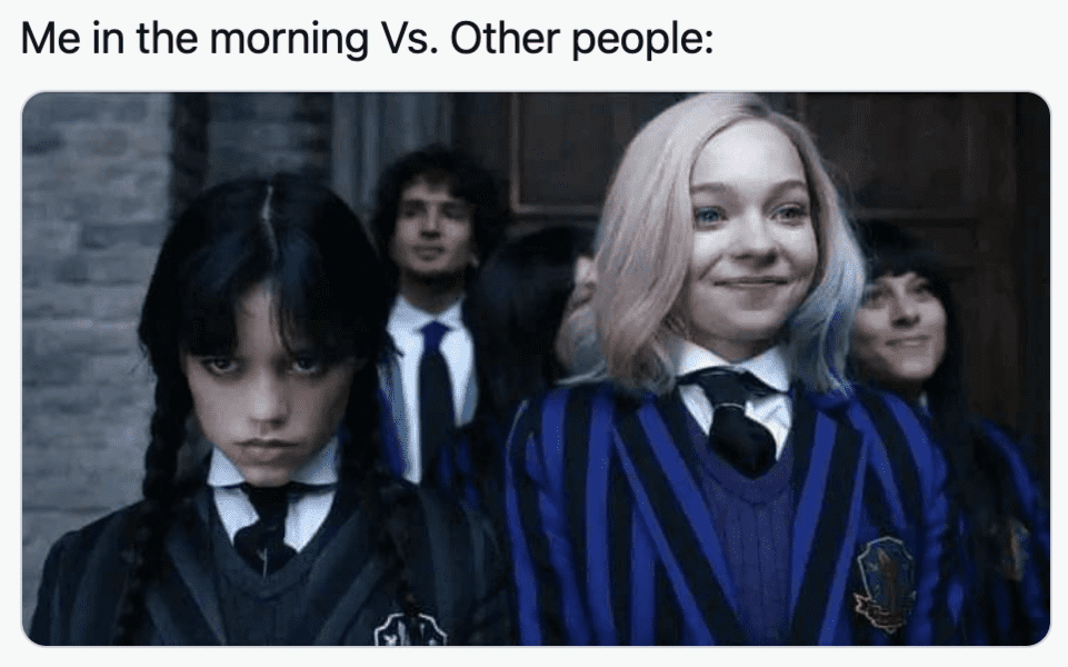 This internet meme shows the difference between morning people and other people.