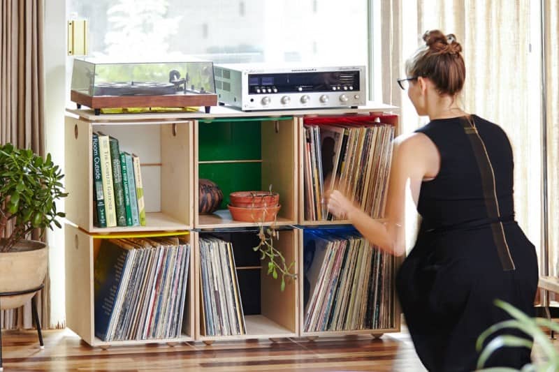 This stunning rectangular-shaped rich grain furniture can be used as a suitable LP record storage facility. The design is exceptionally eloquent that the two-tone wood can be used in any setting, be it in an office space or your bedroom.