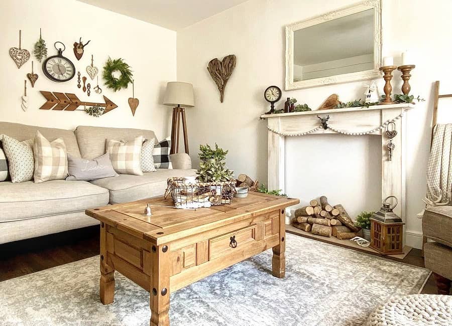 Unless you’re going for a really rustic living room, don’t go overboard. Choose one or two pieces that are more of an accent piece. This could mean your coffee table or an accent chair.