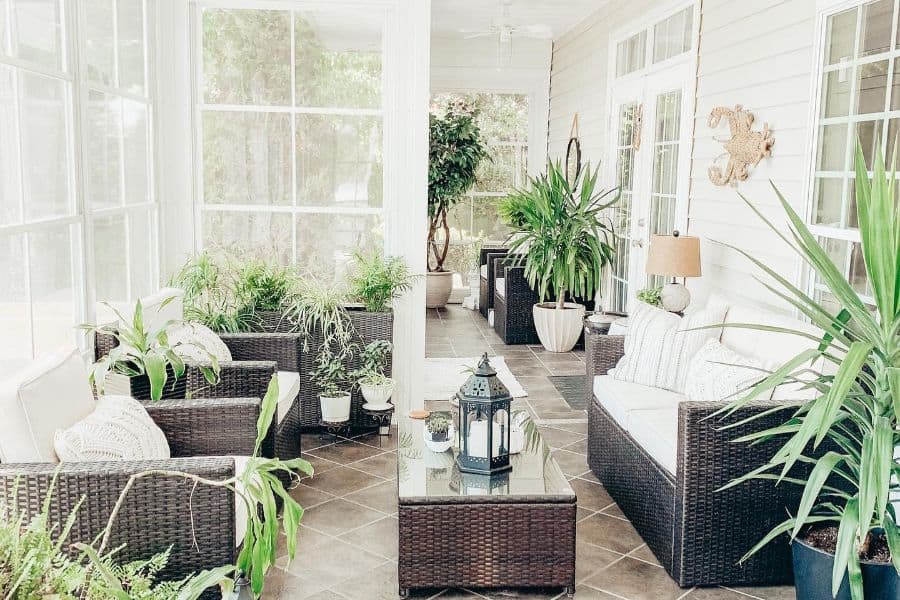 Sunrooms are safer to fill with indoor-only furniture, decor, and household electronics than enclosed patios or porches. When choosing sunroom decor, treat the space like a second living room or home office.