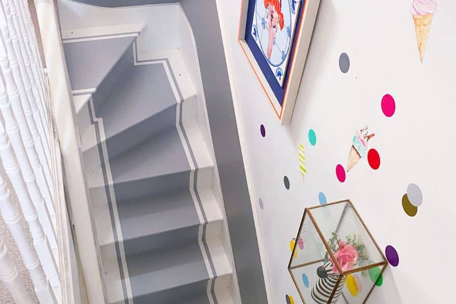 Painted stairs can provide anything from an elegant to a beachy to a bohemian vibe, depending on how they’re done. Painted risers and step surfaces provide the appearance of a classic runner without the trip hazards of carpet.