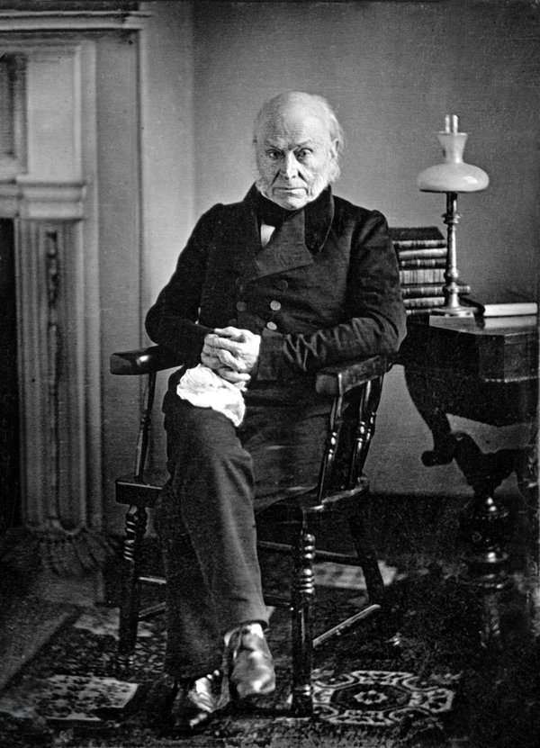 Shot by Philip Haas, this photo shows John Quincy Adams, the first president of the United States, relaxing at his home in Quincy, Massachusetts. The photo was taken in 1843, some 14 years after Adams had left office. Although not smiling, something few people did in early photos, Adams seems relaxed sitting in a chair by the fireplace.