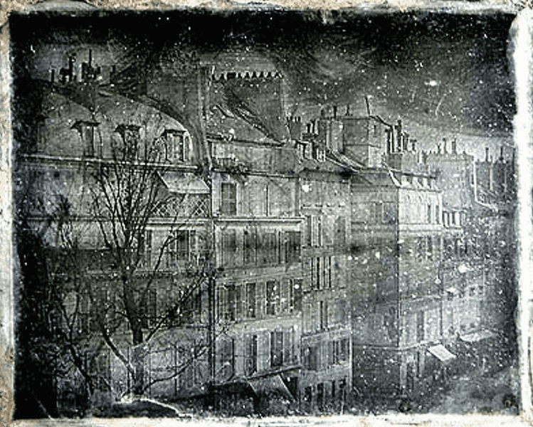 As well as getting people to take portraits of himself, Louis Daguerre was continually photographing the world around him. This photo, dating back to 1838, is an image of his street. You can clearly see the outline of the buildings and the trees to the left of the image.