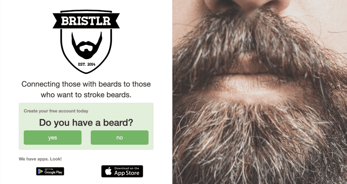 This is Tinder for beard lovers. Bristlr works like any other dating app, except its purpose is to connect those sporting beards with those who love beards. It lets you search by location and connect with people who love beards.