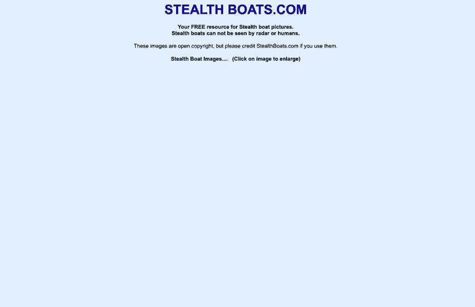 This website is dedicated to stealth boats. All you need to do is click on the image of the boat and it will enlarge and reveal all. The only problem is it is hard to see the actual image of the boat, but they are there. Trust us.