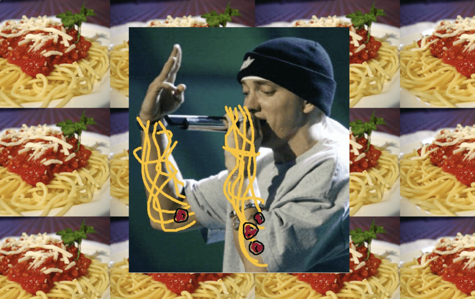 Here’s an interesting remix of Eminem’s hit song “Lose Yourself.” It replaces many of the lyrics with the word “spaghetti” and makes for a hilarious cover.