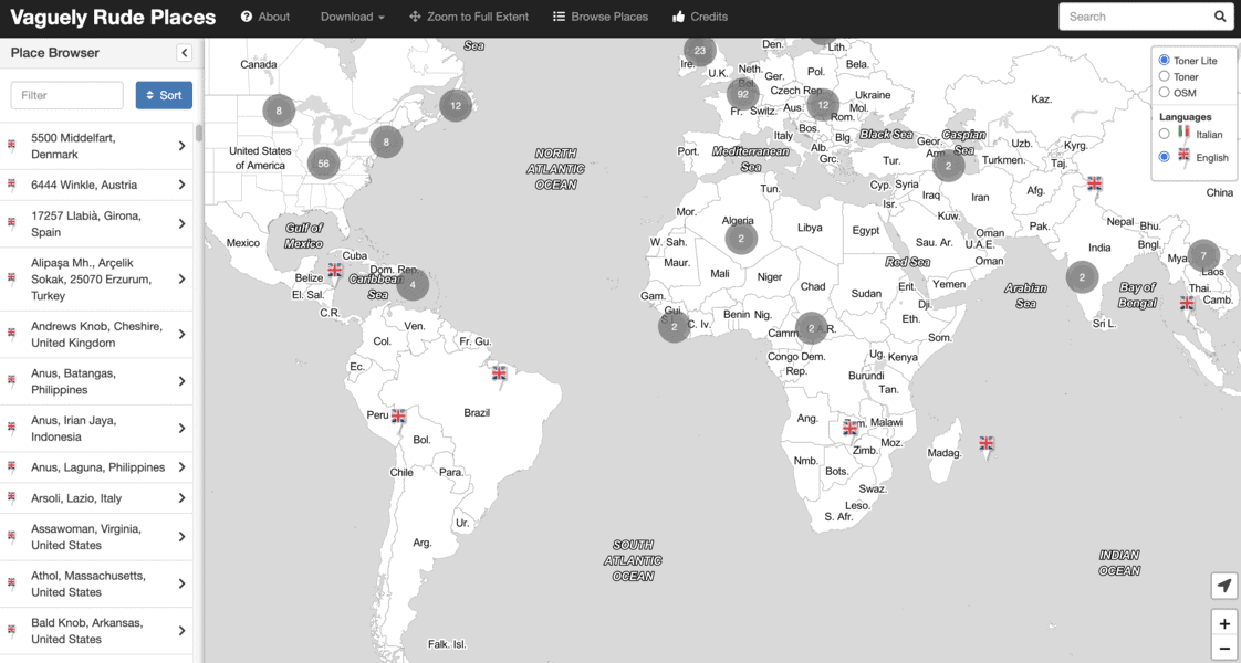 Ever wanted to know how many places are named Anus or where Uranus Peak is located? Vaguely Rude Places has you covered with the most extensive collection of rude places in the world. You’ll find the most in North America, which is somehow not surprising.