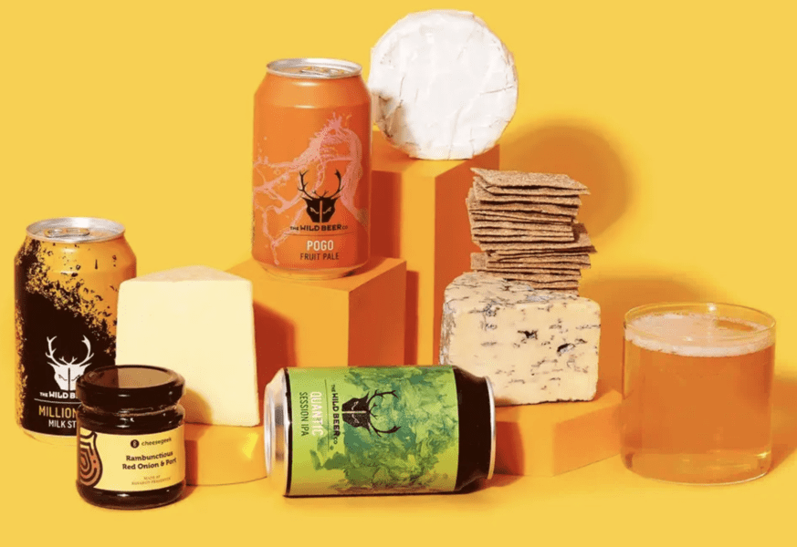 Included in this box are 200g Heckfield with 330ml of Quantic, 200g Cenarth Brie with 330ml of Pogo, and 200g Yorkshire Blue with 330ml Millionaire. Each beer and cheese has a distinct taste that will have beer and cheese lovers in heaven.