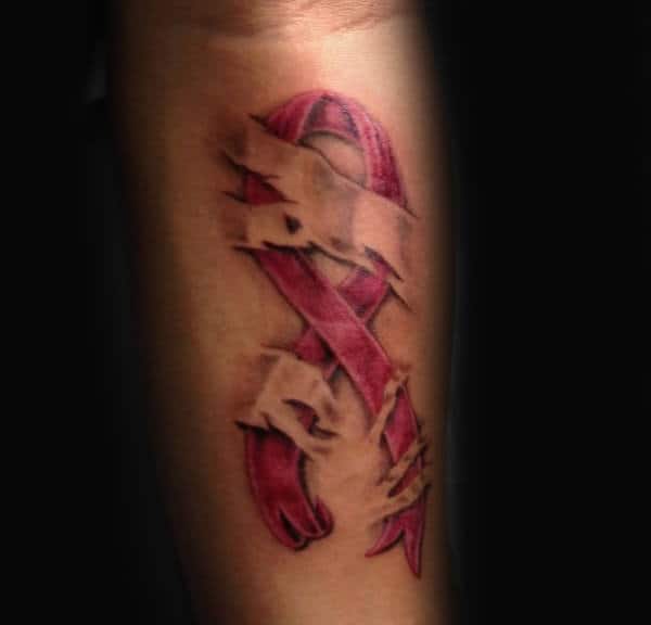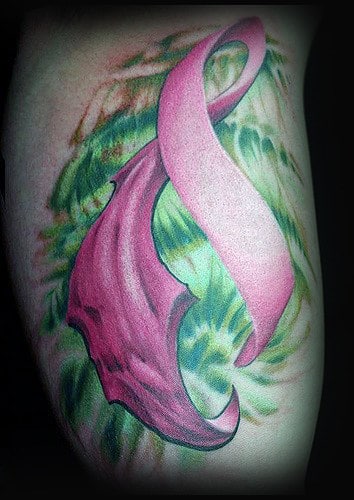 4. Cancer Ribbon Tattoos Representing a Fight or Battle