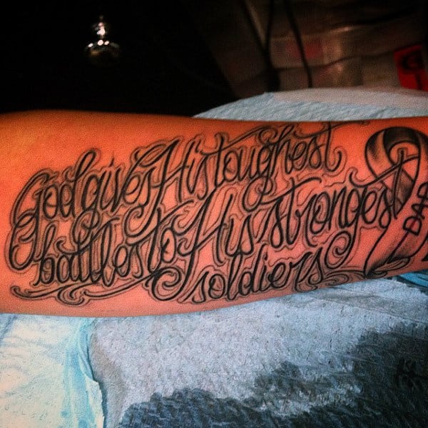 Whether you or a has finished or is in the middle of the fight against , a representing their courage is a beautifully courageous choice. Boxing gloves are a classic representation of punching it out with a malignant opponent. Military-themed tattoos boldly honor the guts and dedication required to beat a deadly disease.