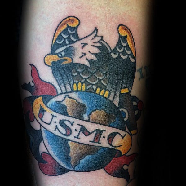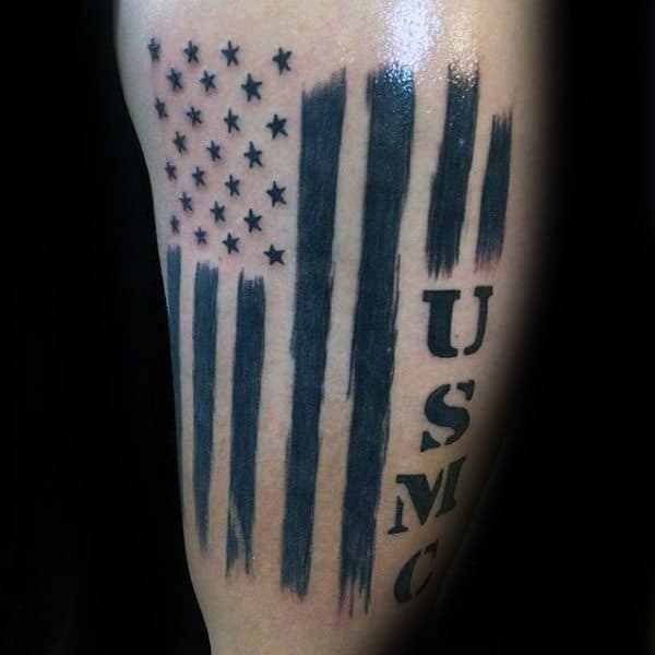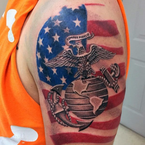 There is no more directly patriotic vocation than a career in the armed forces. The thin red line standing between the glorious USA and those who would destroy her. So it makes sense that a lot of USMC tattoos would be flag themed. What better way to show off your love of country and your dedication to protecting her than with red, white and blue USMC imagery.