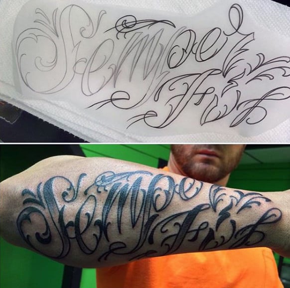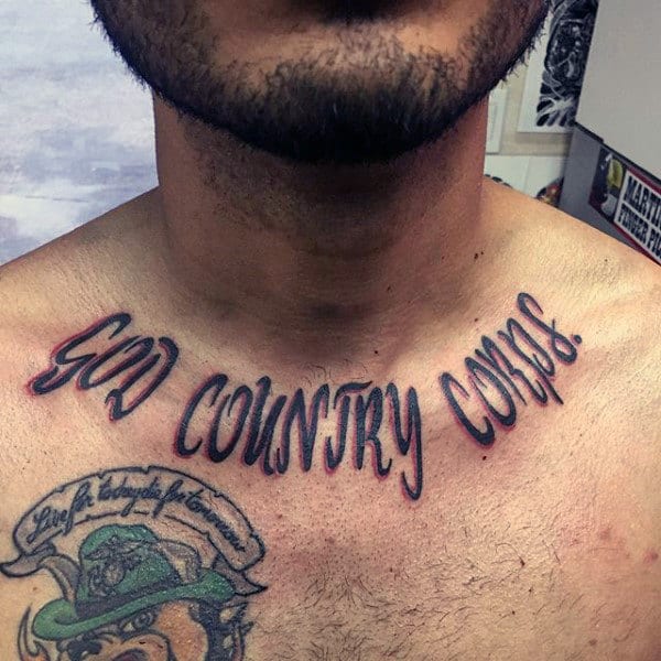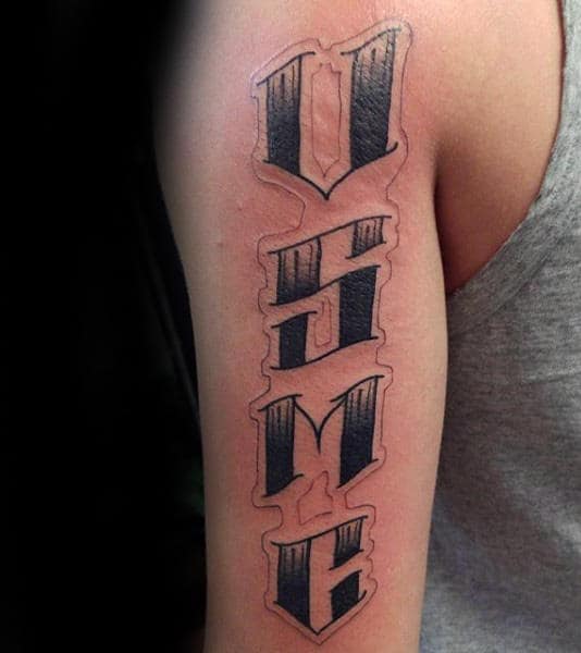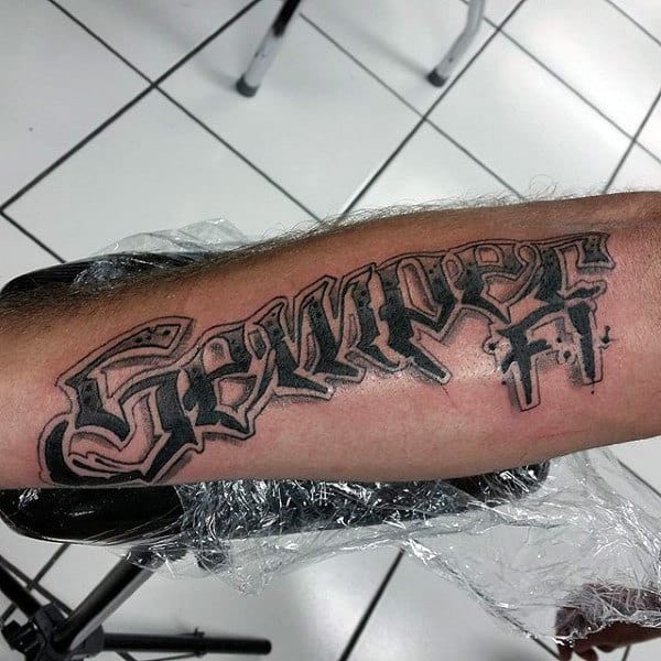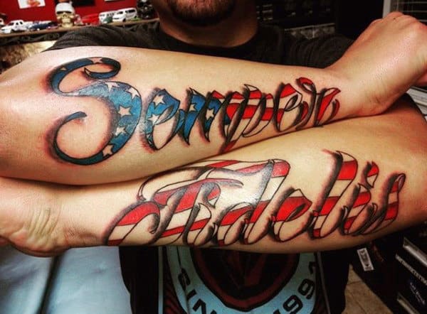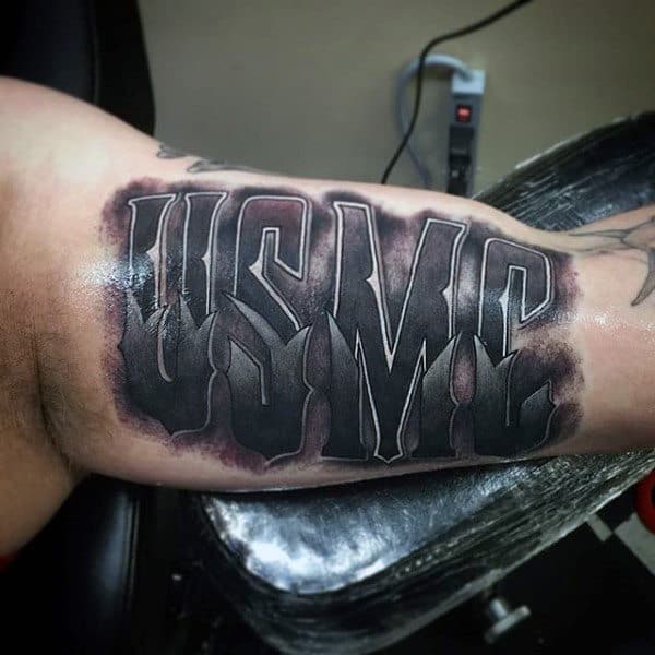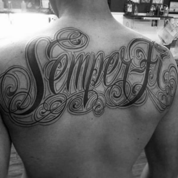 These tattoos are awesome for traditional script and suit a variety of imagery and color schemes. You have your black and grey obviously but there’s also red, white and blue, flag themed or a combination of script with logo or other USMC imagery.
