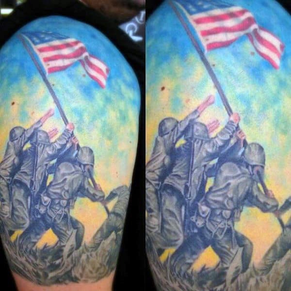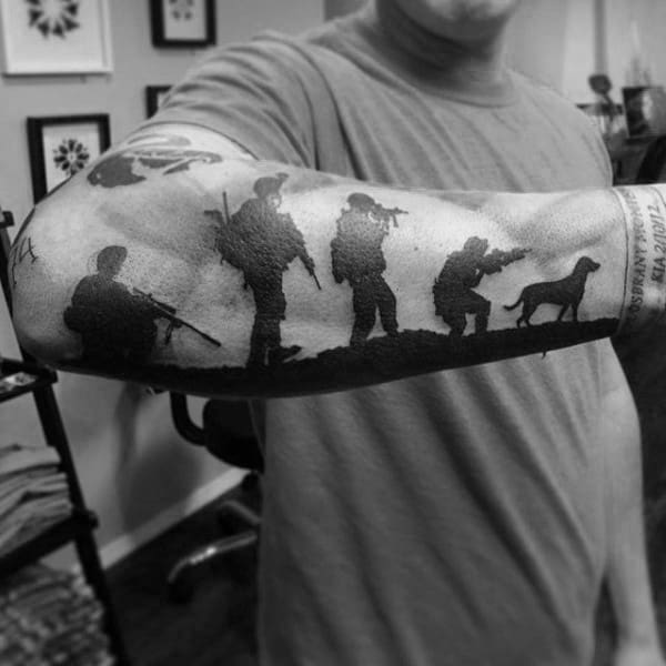 These can be small, simple, hidden tattoos or large and lifelike scenes. This is also a way to separate from the pack a little as these broader military themed tattoos are far less common than some of the other styles and applications.