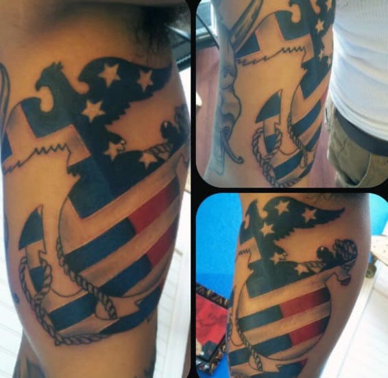 2. Flag Themed/Red, White and Blue Marines Tattoos