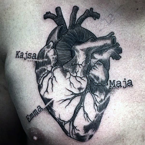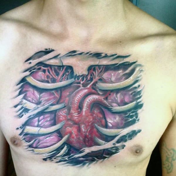 3. Anatomical Heart Chest Tattoos