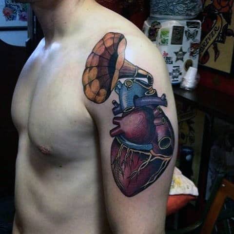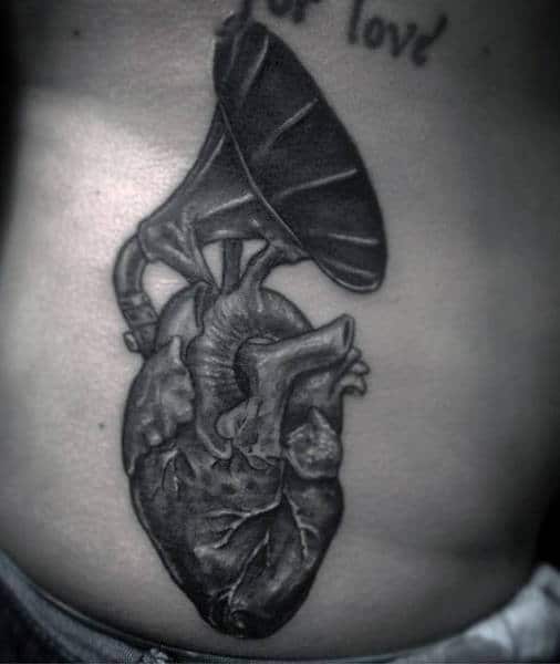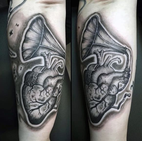 6. Gramophone Anatomical Heart Tattoos