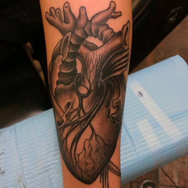 7. Forearm Anatomical Heart Tattoo