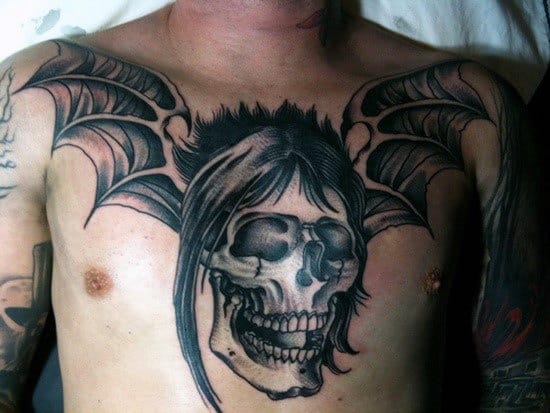 Bat tattoos and the heavy metal aesthetic are like PB&J. When you’re looking for something to express darkness, mystery, power, and weirdness, you can’t go wrong here. A truly metal design can be adapted to any style from Neo Traditional to New Wave or Trash Polka. A high-quality artist can really cut loose and press the envelope with a bat design like the bat-winged skull design in the first example above. With wings spread bats have a natural symmetry, evoking a primal feeling best described as describe as metal. Some bat tattoos merely adopted the darkness, but these totally metal bat tattoos were born in it!