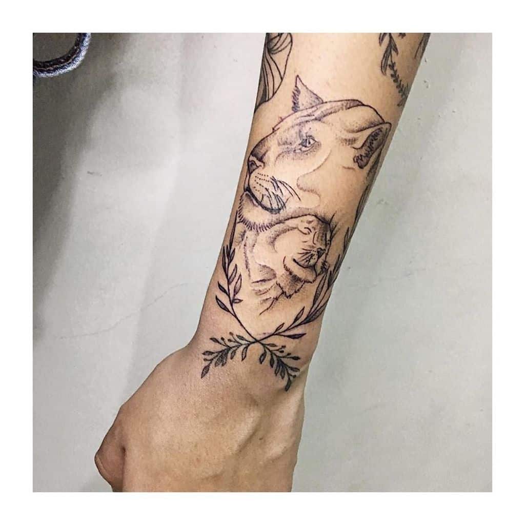 11. Tattoos of a Lioness with a Cub