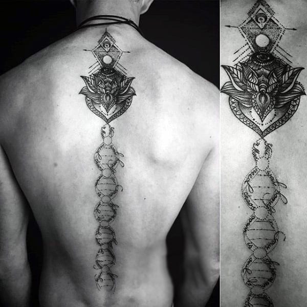 The final abstract DNA back tattoo is also a great spin on DNA, using the winds of the helix to spell out parallel messages. The versatile shape of a DNA helix also offers a myriad of interpretations. I really like the first piece especially with its garlic-like mirroring.