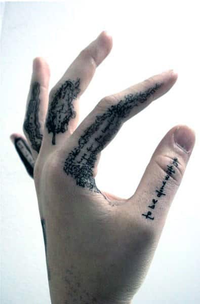 Even abstract and more artistic styles have made their way into this men’s guide to cool finger tattoo ideas.