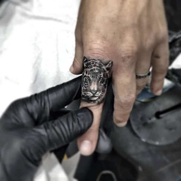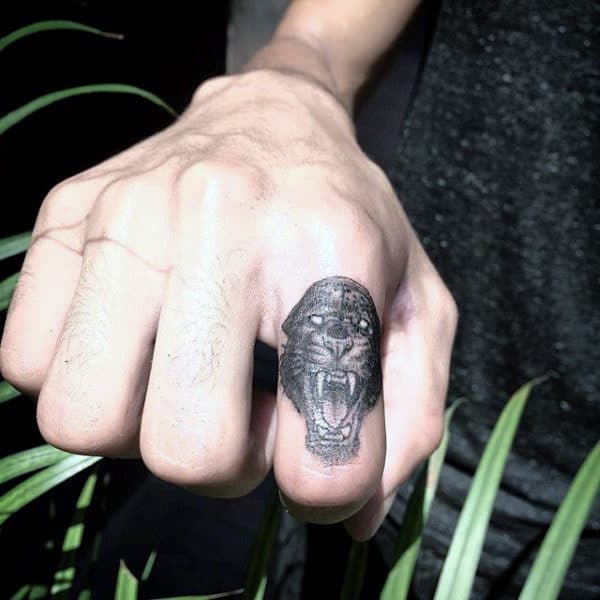 The challenge of a finger tattoo is fitting the right amount of detail into a small space to make it readable. One of the most fun applications involves a beastly design that shows off artistic skill to make a clear and readable animal image in only the width of a finger.
