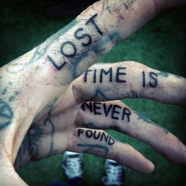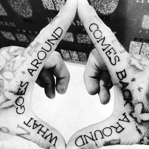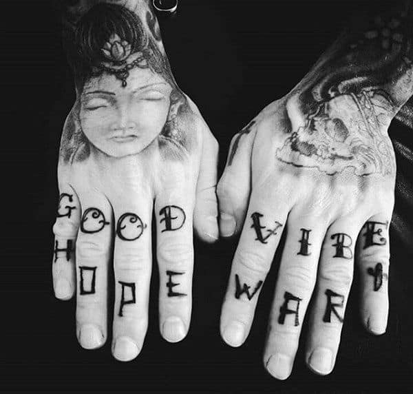 Lettering across the fingers is one of the most classic finger tattoo designs in the world. Most of us have seen the words “LOVE” and “HATE” emblazoned on some knuckles as knuckle tattoos in the past but you need not limit yourself to that simple a design.