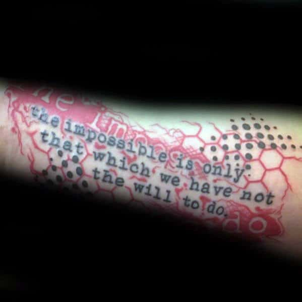 Quotes give men major points with the ladies. Intelligence is definitely something that some women look for in a man. It is clear why a man would choose a quote for their forearm tattoo.