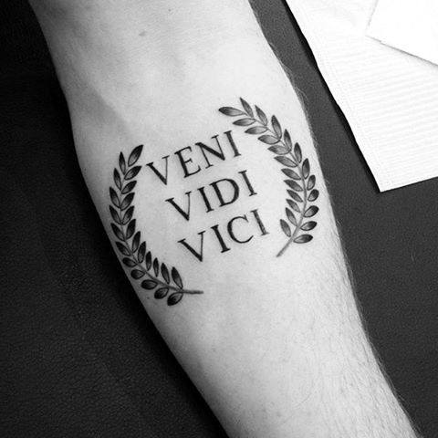 Add a slight embellishment with laurel wreath, which is an especially nice touch to tattoos of latin quotes. Talk with your artist about how to best maintain minimalism or go all out. Setting your quote tattoo on a scroll is an especially popular option that gives your piece a particularly archaic vibe.