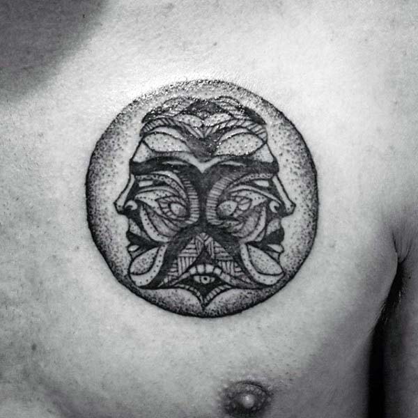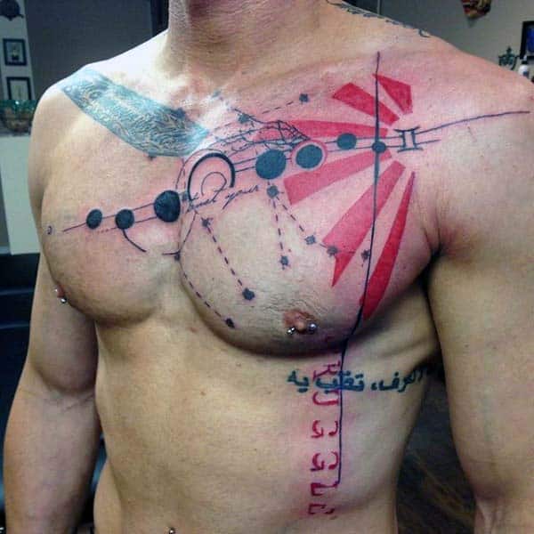 Image one is a great representation of taking the Gemini symbol as a focal point for a larger piece. The piece starts on the chest and turns into a Japanese style sleeve.