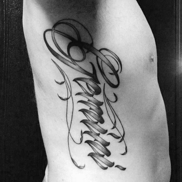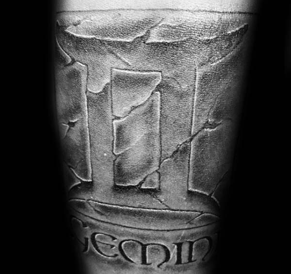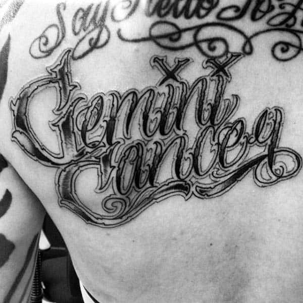 The final two images have a great use of imagery and 3D style to help the tattoo stand out. The first uses a 3D stone background making it seem as if the word Gemini is sculpted into the skin. While the final image has specific details within the word that shows off this Geminis’ passions.
