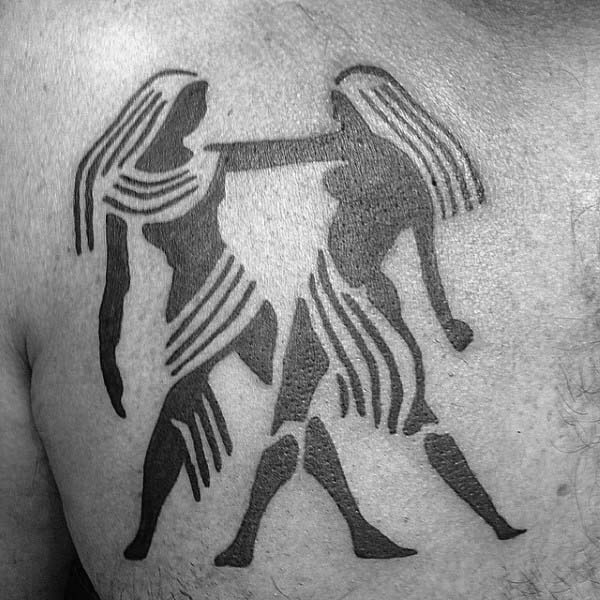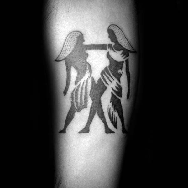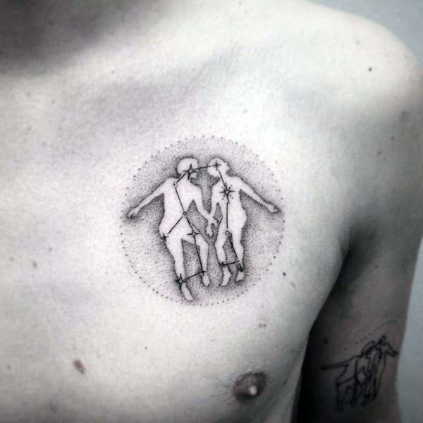 Geminis are the ‘two for one” special of the Zodiac world. They are represented as the twins and there are many variables of getting this tattooed. One can use dotwork and line work to form the shape of twins (shown in image three and eight). The first image is a favorite that is a simple yet creative black work tattoo.