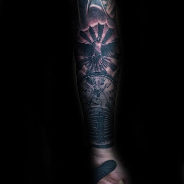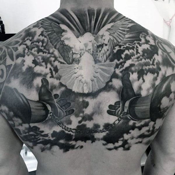 Doves are also a stunning choice for a simple Heaven tattoo. They can be realistically rendered in smaller areas, and with a few clever background elements can perfectly embody Heaven without taking up tons of epidermal real estate. Remember that details like feathers can be difficult. If you want your dove to appear lifelike, choose an artist with proven skill in this area.