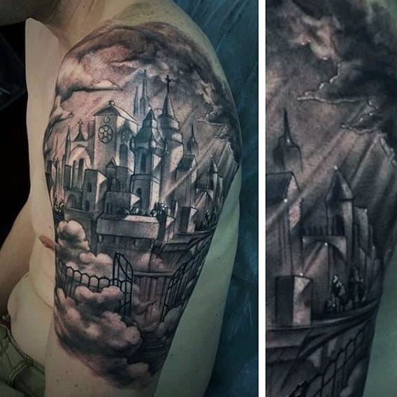 Some practitioners like to show both sides of this religious reality, so their heaven tattoos are frequently complemented by the hellish alternative. Using the devil as a counterpart is a rousing way to magnify the magical paradise of Zion. Enjoy this look at inked nirvana for some blissful encouragement!