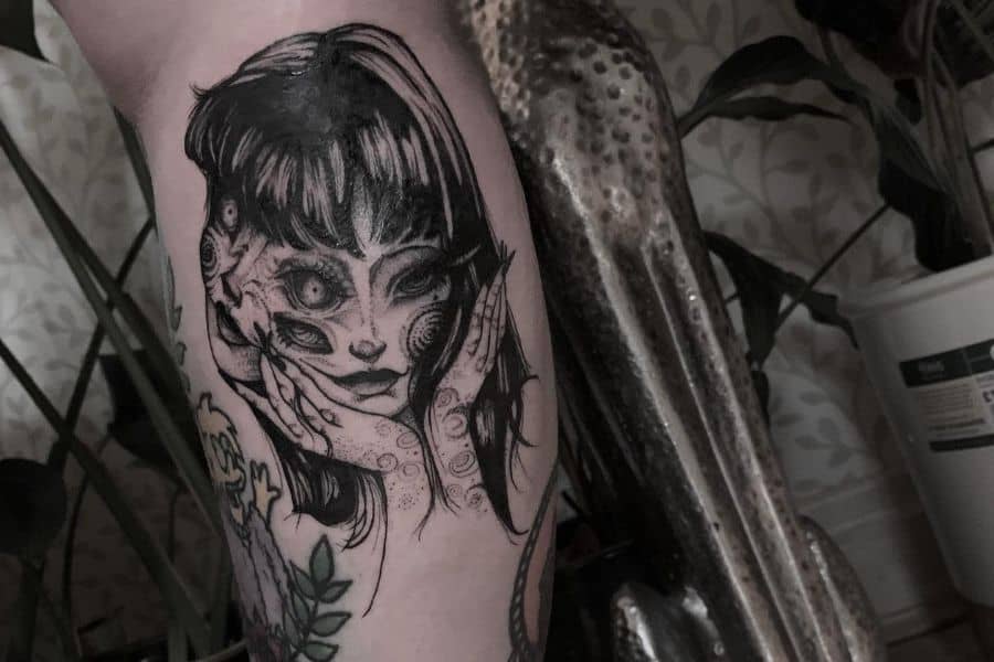 The titular character from Ito’s first Manga, Tomie is arguably his most popular character in tattoo art. She is easy to spot with black hair and a beauty mark – possesses the power to make anyone fall in love with her, driving them into jealous rages that lead to violence.