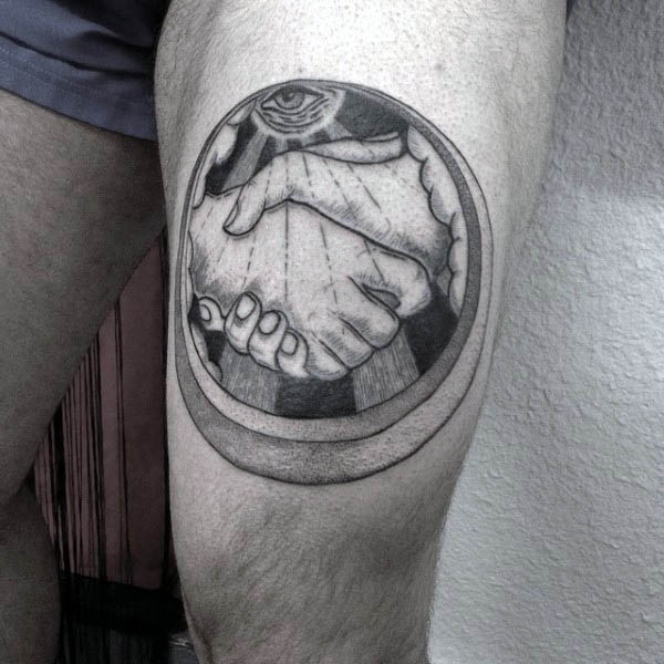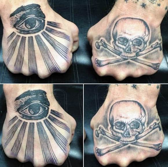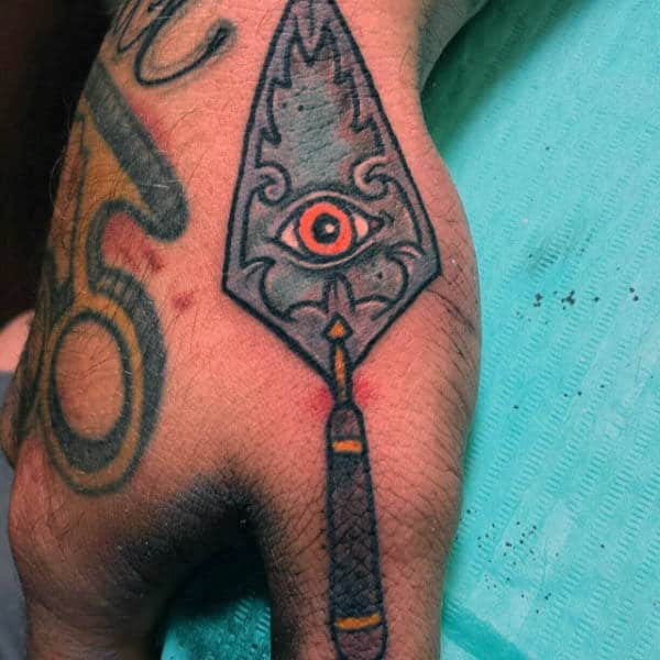 Pieces in this section are far less grand than those in the rest of this article, but as we know, it isn’t always the size that connotes importance or relevance. The top of the hand was enough space to get the captivating gaze of the freemasonry overseeing eye, heavy on the shading with a look that is more welcoming than threatening.